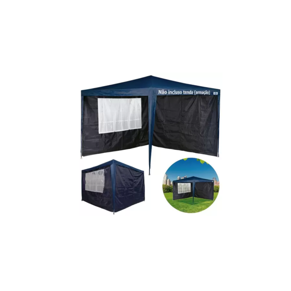 Feito 100% em polietileno com fixadores , para facilitar ao desmontar o gazebo, esta parede traz praticidade para o usuário. A embalagem contém 2 parede.