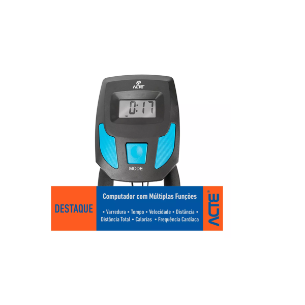 - Monitor de LCD multifunções (Varredura, tempo, velocidade, distância, distância total, calorias e frequência cardíaca)