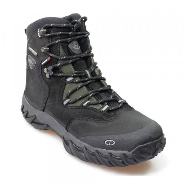 Possui biqueira em borracha, ganchos articulados, travador de cadarço e forração interna em Poliamida com Dry System 100% impermeável e respirável.