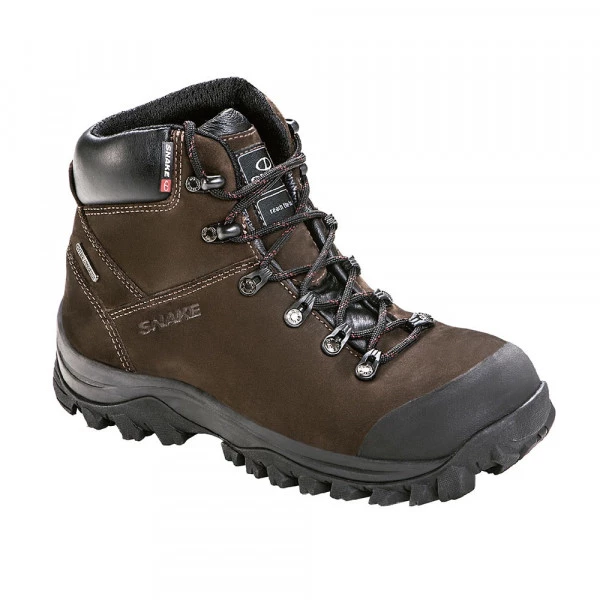 Bota com couro hidrofugado resistente a penetração de água. Biqueira de borracha.