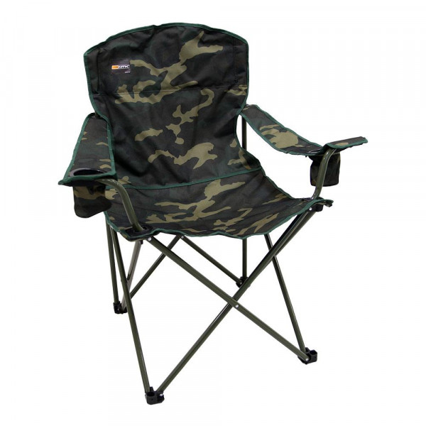 Disponível em 2 cores: preto e camuflado, ela acompanha bolsa de transporte com alça e 2 porta copos no apoio de braço, indicado para latas ou garrafas.
