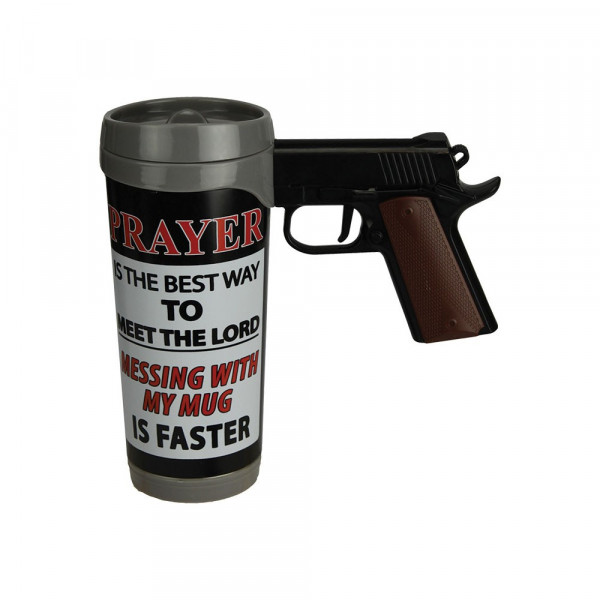 Modelo exclusivo com a frase: 'Prayer, is the best way to meet the lord, messing with my mug, is faster'. Também funciona como um ótimo objeto de decoração.