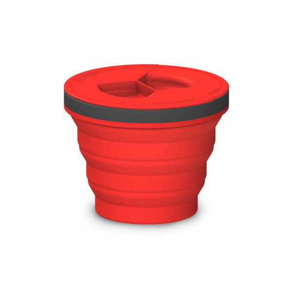 A Caneca/Pote X Seal & Go Medium faz parte da nova gama de recipientes alimentares colapsáveis com vedação à prova de vazamentos. Possui tampas rosqueadas fáceis de manusear que protegem contra possíveis derramamentos.