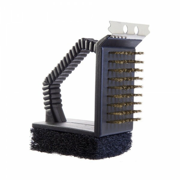 O Clean Grill é formado de uma bucha feita de fibras de poliéster e uma escova com cerdas de latão, ambas extremamente eficazes na limpeza mesmo das sujeiras mais pesadas. Para isso, pode-se usar também a espátula acoplada. E adeus, sujeira!