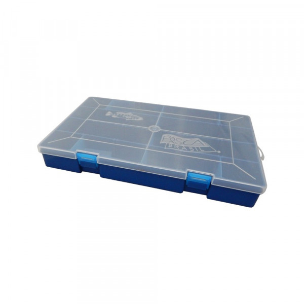 Estojo em material resistente para armazenar iscas, que permite a criação de até 24 repartições.