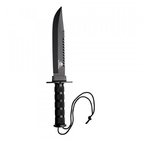 Além disso, seu revestimento tático antirreflexo é um diferencial se comparado a modelos do mesmo porte de outras marcas. Ela conta com serra no dorso da lâmina, guarda para maior segurança na empunhadura e cabo com corda em nylon.