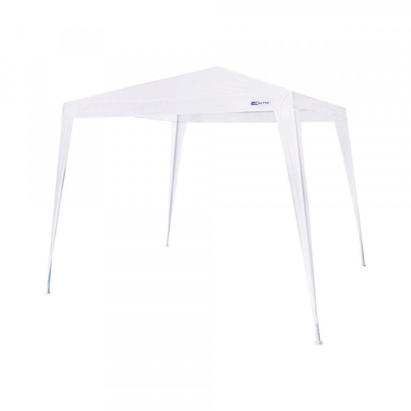 O gazebo Camp acompanha estacas, conexões, sapatas e cordinhas para fixação e está disponível na cor branca.