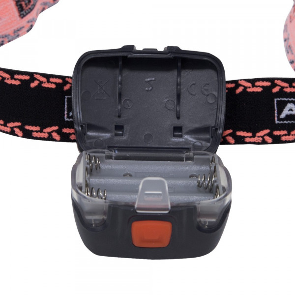 A lanterna de cabeça Azteq KASHINA tem o corpo em ABS com botão emborrachado, ajuste para cima e para baixo, a fim de direcionar a luz para onde se deseja e um LED COB de 3 watts com 140 lúmens.