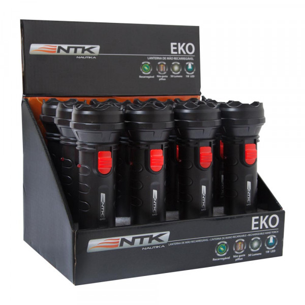 Ela não usa pilhas e através de sua lâmpada de LED CREE, gera uma potência de 50 lúmens.