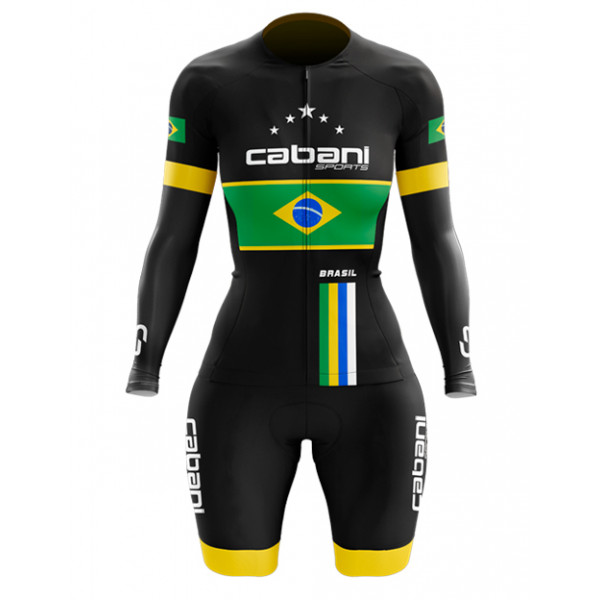 O Macaquinho Cabani Brasil manga longa é perfeito pra você que busca o máximo de conforto durante suas pedaladas, pois a peça é confeccionada com tecido composto de Poliester e Elastano, que mantém a temperatura do corpo estável além de ter um toque muito firme ao corpo.