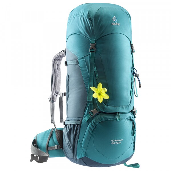 Mochila de caminhada cargueira Alpamayo 60+10 SL Deuter, ideal para trekking e caminhadas mais técnicas. A Alpamayo faz parte da linha Special Model da marca, mochilas com sistemas de ventilação mais simples. Desenhada para mulheres e homens de baixa estatura, com o sistema SL para ajuste feminino.