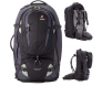 As mochilas da linha Traveller possuem fitas de compressão lateral e alça tiracolo para facilitar o carregamento, além de um inteligente sistema de proteção das alças para quando a mala for despachada no aeroporto ou na rodoviária. No revestimento interno também podemos ver a preocupação com a segurança: a Traveller 70+10 é confeccionada com poliuretano (PU), o que torna a mochila resistente a água. E para garantir o conforto na hora do ajuste ao corpo do usuário de acordo com sua altura, a mochila dispõe do conhecido sistema Vari-Quick, que faz o ajuste da altura das alças de modo prático e rápido.