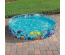 A piscina circular semi-rígida da Bestway tem capacidade para até 946 litros, sendo tranquilamente usada por até 4 pessoas.