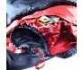 Internamente, possui um bolso com zíper para guarda de materiais, como lanterna ou documentos.