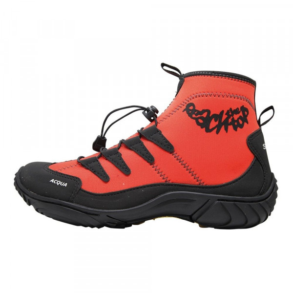 Cabedal: Neoprene, cadarço com sistema de travamento e ajuste. Biqueira em borracha.