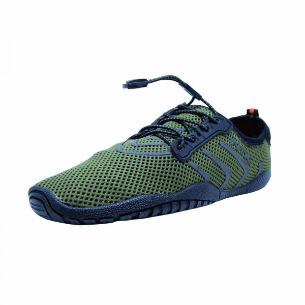 Ele possui um revolucionário sistema de respiração, que mistura poliamida e poliéster com elastano, além de solado em PVC emborrachado, que quando molhado apresenta grande aderência aos mais variados terrenos e superfícies.
