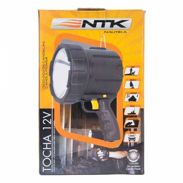O foco de mão Tocha 12V, da Nautika, é uma lanterna de mão de iluminação com lâmpada 6W e que vem com adaptador para recarga em corrente de 12V. Para isso, pode ser ligado em qualquer entrada de energia de bateria, como carro, lancha, trailer e etc.